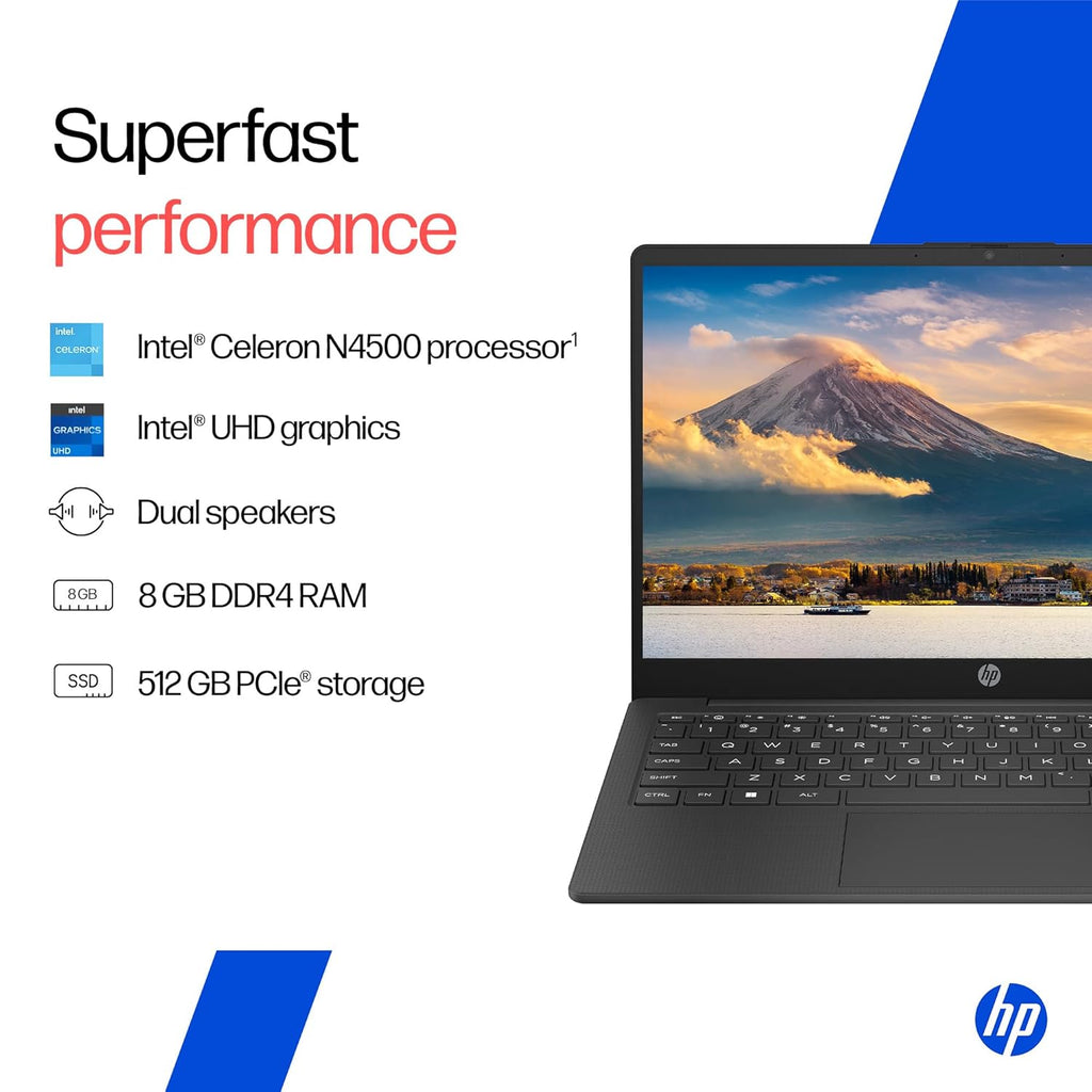 HP 14S-DQ3141TU CELERON -N4500/8GB/512GB SSD/14 INCH/WINDOWS 11+MS OFFICE 2024/BLACK